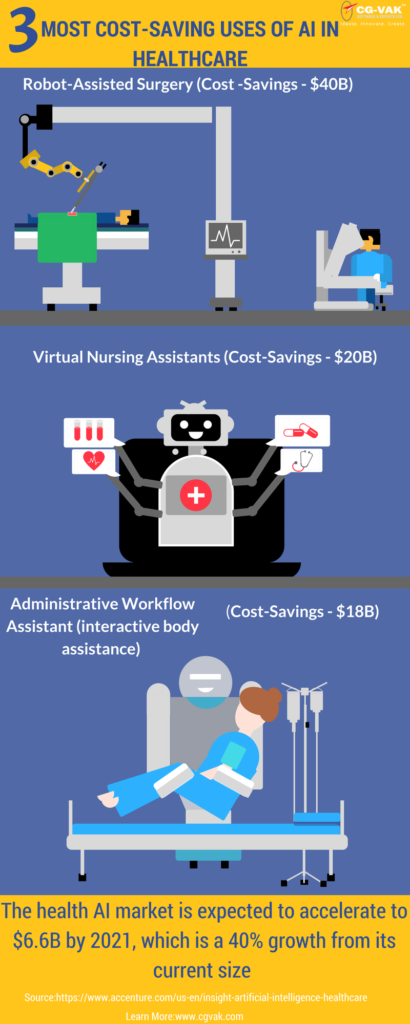 With that great insight, let’s take a look at the three most cost-saving uses of AI in healthcare.